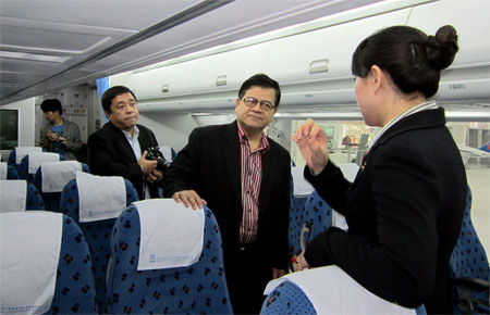 “金通航空培訓(xùn)”駐云師大王冬梅主任陪同各位來(lái)賓參觀模擬艙,介紹該專業(yè)軟件和硬件設(shè)施。謝院長(zhǎng)說(shuō):為提高學(xué)生職業(yè)技能和綜合素質(zhì),培養(yǎng)具有國(guó)際競(jìng)爭(zhēng)力的航空人才,我校的教學(xué)模式涵蓋實(shí)訓(xùn)教學(xué)體系、實(shí)訓(xùn)教學(xué)模式、實(shí)訓(xùn)教學(xué)質(zhì)量監(jiān)控等。模擬機(jī)艙的使用不僅能呈現(xiàn)機(jī)艙的真實(shí)環(huán)境,也能為在校學(xué)習(xí)的學(xué)生提供熟悉環(huán)境及超前使用與操作設(shè)備的機(jī)會(huì)。
