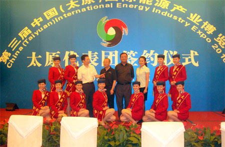 太原旅游職業(yè)學(xué)院空乘專業(yè)學(xué)生 擔(dān)任第三屆中國(guó)國(guó)際新能源博覽會(huì)禮儀     本網(wǎng)訊  2010年9月16日,由山西省政府、商務(wù)部、科技部和國(guó)家能源局聯(lián)合主辦的第三屆中國(guó)(太原)國(guó)際能源產(chǎn)業(yè)博覽會(huì)在太原開(kāi)幕。金通航空培訓(xùn)合作院校太原旅游職業(yè)學(xué)院旅游藝術(shù)系空中乘務(wù)專業(yè)Y091班共40名同學(xué)參加并擔(dān)任了本次會(huì)議及各專題論壇和重點(diǎn)項(xiàng)目簽約儀式暨成果發(fā)布會(huì)的立業(yè)接待工作。