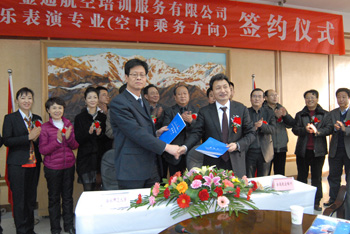 本網(wǎng)訊:新年新氣象,萬事開門紅。2011年,公司銳意進(jìn)取,成果豐碩;2012年,剛剛踏入,我們便一路平順,又與具有百年校史的高水平院!鞅睅煼洞髮W(xué)建立了合作關(guān)系。1月7日,西北師范大學(xué)與我公司合作開辦音樂表演專業(yè)(空中乘務(wù)方向)簽約儀式在學(xué)校第四會(huì)議室隆重舉行。西北師范大學(xué)副校長(zhǎng)劉仲奎、黨委副書記于樹青、北京廣慧金通教育科技有限公司董事長(zhǎng)兼總經(jīng)理焦殿成、副總經(jīng)理兼院校教學(xué)工作部總經(jīng)理盛美蘭、中國南方航空公司招飛中心主任曾祥榮、中國東方航空公司甘肅分公司副總經(jīng)理馮濤、廈門航空公司人力資源部總經(jīng)理林峰、中國東方航空公司甘肅分公司客艙服務(wù)部經(jīng)理劉春嵐、中國東方航空公司甘肅分公司辦公室主任邵明軍,以及學(xué)校相關(guān)部門負(fù)責(zé)人出席簽約儀式。     (會(huì)議現(xiàn)場(chǎng))      董事長(zhǎng)焦殿成在簽約儀式上發(fā)表講話,他說,我們來到西北地區(qū)交通要道、漢唐絲綢之路的必經(jīng)之地—甘肅省蘭州市,相聚在具有百年建校歷史的西北師范大學(xué),共同參加和見證西北師范大學(xué)與“金通航空培訓(xùn)”合作辦學(xué)簽字儀式。他代表“金通航空培訓(xùn)”,向蒞臨會(huì)議的各級(jí)領(lǐng)導(dǎo)、各位嘉賓和新聞界的朋友們表示熱烈的歡迎和誠摯的感謝! (于樹青副書記致辭) (焦殿成董事長(zhǎng)致辭)      甘肅,地處黃河上游的黃土高原、內(nèi)蒙古高原與青藏高原的交匯地區(qū),從東到西長(zhǎng)1655公里。美麗的風(fēng)情文化,奇特的狹長(zhǎng)地貌,燦爛的文物古跡,濃郁的民族風(fēng)情,使甘肅獨(dú)具魅力!現(xiàn)在,伴隨著祖國民航業(yè)的快速發(fā)展,甘肅民航業(yè)也取得了非常可喜的成績(jī),為甘肅乃至西北地區(qū)的經(jīng)濟(jì)社會(huì)發(fā)展做出了重大貢獻(xiàn)。狹長(zhǎng)的地形在一定程度上限制了甘肅人們的出行,為服務(wù)社會(huì)、提升人民的幸福指數(shù),國家和甘肅都制定了符合民生的發(fā)展戰(zhàn)略。今后幾年內(nèi),甘肅的民用機(jī)場(chǎng)建設(shè),將按照國家民航“東部提升、中部加強(qiáng)、西部加密”的要求,迅速開始全面提速,至2012年,甘肅將增加機(jī)場(chǎng)布點(diǎn),將新建嘉峪關(guān)機(jī)場(chǎng)、金昌金川機(jī)場(chǎng)、甘南夏河機(jī)場(chǎng)、張掖機(jī)場(chǎng)、隴南機(jī)場(chǎng)、平?jīng)鰴C(jī)場(chǎng)等6個(gè)機(jī)場(chǎng),將改擴(kuò)建蘭州中川機(jī)場(chǎng)、天水機(jī)場(chǎng)、慶陽機(jī)場(chǎng)和敦煌機(jī)場(chǎng)。屆時(shí),甘肅省10個(gè)民用機(jī)場(chǎng),將形成以蘭州中川機(jī)場(chǎng)為中心,東西部機(jī)場(chǎng)群為兩翼,輻射全省大部分市州的機(jī)場(chǎng)網(wǎng)絡(luò)集群。因此,學(xué)生未來的就業(yè)前景、學(xué)?粘藢I(yè)的發(fā)展規(guī)模都非常廣闊。      公司與西北師范大學(xué)采用校企合作辦學(xué)模式,共同開辦本科層次的音樂表演專業(yè)(空中乘務(wù)方向),是合作雙方經(jīng)過近3年時(shí)間認(rèn)真考察、縝密調(diào)研、履行正規(guī)批報(bào)程序所做出的科學(xué)決策。合作期限為8年,目標(biāo)和思路明確,權(quán)利和義務(wù)清楚,職責(zé)和任務(wù)具體?傮w構(gòu)想是:充分發(fā)揮校企雙方的資源優(yōu)勢(shì),立足蘭州,輻射西北,服務(wù)全國,努力為祖國民航業(yè)選拔、培養(yǎng)、輸送合格的空乘人才和管理人才,真正使西北師范大學(xué)音樂表演專業(yè)(空中乘務(wù)方向)得到科學(xué)和可持續(xù)發(fā)展。      在師范類高等院校久負(fù)盛名的西北師范大學(xué),為甘肅省人民政府和教育部共同建設(shè)的重點(diǎn)大學(xué)、國家重點(diǎn)支持的西部地區(qū)十四所大學(xué)之一。其前身為國立北平師范大學(xué),發(fā)端于1902年建立的京師大學(xué)堂師范館。1937年“七七”事變后,北平師范大學(xué)與同時(shí)西遷的國立北平大學(xué)、北洋工學(xué)院共同組成西北聯(lián)合大學(xué),國立北平師范大學(xué)整體改組為西北聯(lián)大下設(shè)的師范學(xué)院。1939年師范學(xué)院獨(dú)立設(shè)置,改稱國立西北師范學(xué)院,1941年遷往蘭州。1958年前學(xué)校為教育部直屬的全國6所重點(diǎn)高師院校之一,1958年劃歸甘肅省領(lǐng)導(dǎo),改稱甘肅師范大學(xué)。1981年復(fù)名為西北師范學(xué)院。1988年更名為西北師范大學(xué)。1985年教育部依托學(xué)校設(shè)立了教育部直屬的、高等院校建制的“西北少數(shù)民族師資培訓(xùn)中心”,與學(xué)校實(shí)行“兩塊牌子、一套班子”兩位一體的管理體制。1987年,國務(wù)院又在學(xué)校建立了“藏族師資培訓(xùn)中心”。學(xué)校是國務(wù)院首批確定的具有三級(jí)學(xué)位授予權(quán)的單位,從1982年起具有學(xué)士、碩士、博士三級(jí)學(xué)位授予權(quán)。學(xué)校面向全國31個(gè)省(市、自治區(qū))招生,現(xiàn)有各類學(xué)生34300余人。其中,國家任務(wù)博士、碩士研究生4568人,其他各類在職攻讀碩士學(xué)位研究1110人,普通本科學(xué)生16500余人,成人教育類學(xué)生13100余人。 (雙方簽署合作辦學(xué)協(xié)議)      西北