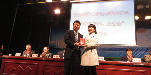自2011年校企合作開始,為鼓勵學生認真學習,北京廣慧金通教育科技有限公司設立了“金通獎學金、獎教金”。在青師范大學舉行的空乘專業(yè)管委會會議暨金通獎學金、獎教金頒發(fā)儀式上,副校長崔巍,公司董事長焦殿成等領導為獲得獎項的48名同學和老師們頒獎。崔副校長對同學們表示了衷心的祝賀,并希望他們再接再厲,以優(yōu)異的成績回報社會。焦殿成董事長對同學們提出了三點要求:一要刻苦學習、團結友愛;二要提高自身素質(zhì),養(yǎng)成良好習慣;三要做好職業(yè)生涯規(guī)劃,做好自我定位。他希望同學們心懷感恩,努力付出,圓夢藍天,并祝愿青海師范大學與北京廣慧金通教育科技有限公司的明天更加美好!
