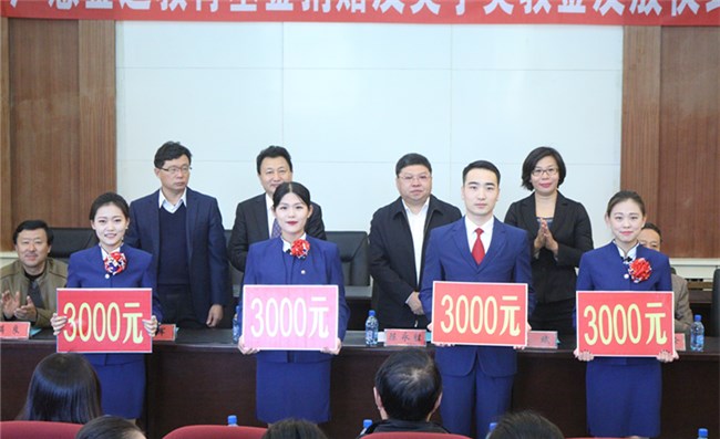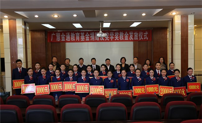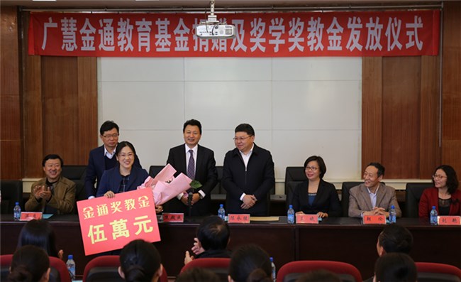 10月12日上午,內(nèi)蒙古民族大學(xué)教育基金會(huì)在霍林河校區(qū)勵(lì)志樓舉行“廣慧金通”教育基金捐贈(zèng)暨獎(jiǎng)學(xué)金獎(jiǎng)教金發(fā)放儀式。內(nèi)蒙古民族大學(xué)校長(zhǎng)陳永勝、副校長(zhǎng)任軍出席儀式。校長(zhǎng)助理、教育基金會(huì)理事長(zhǎng)朝倫巴特爾與廣慧金通教育科技有限公司董事長(zhǎng)焦殿成簽署了廣慧金通教育科技有限公司向內(nèi)蒙古民族大學(xué)《捐贈(zèng)協(xié)議》,朝倫巴特爾理事長(zhǎng)向焦殿成董事長(zhǎng)頒發(fā)《捐贈(zèng)證書》。旅游與航空服務(wù)學(xué)院院長(zhǎng)劉艷宣讀《關(guān)于發(fā)放“廣慧金通獎(jiǎng)學(xué)金、獎(jiǎng)教金”的決定》,與會(huì)嘉賓及領(lǐng)導(dǎo)為獲獎(jiǎng)的28名同學(xué)和17名教師發(fā)放了獎(jiǎng)金。廣慧金通教育科技有限公司董事長(zhǎng)焦殿成、內(nèi)蒙古民族大學(xué)校長(zhǎng)陳永勝分別講話。獲得“廣慧金通獎(jiǎng)學(xué)金”的學(xué)生代表、旅游與航空服務(wù)學(xué)院2014級(jí)空乘專業(yè)3班郝月同學(xué)作了表態(tài)發(fā)言。