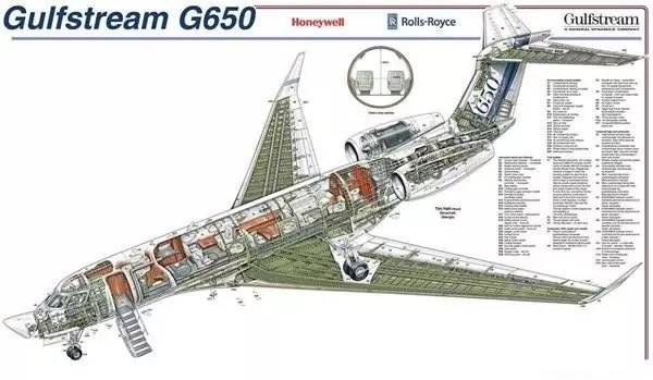 灣流(Gulfstream)系列飛機(jī)是世界上最快最豪華的公務(wù)機(jī),由于豪華特性,它幾乎成為了私人飛機(jī)的代名詞。灣流G650作為灣流系列當(dāng)中的旗艦機(jī)型,內(nèi)部設(shè)計(jì)極盡奢華,著名的智能家居品牌霍尼韋爾和高端汽車品牌勞斯萊斯參與了內(nèi)部的制造。