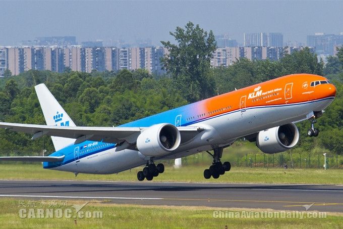 荷蘭皇家航空今年推出了其獨(dú)一無(wú)二的橙色涂裝波音777-300飛機(jī)。