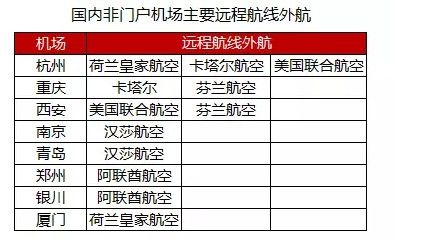 下表是我們總結(jié)的,目前國內(nèi)非門戶機場的有執(zhí)飛遠程定期航線的外航清單,從橫向?qū)Ρ壬峡,南京機場和先進機場的的差距依然很大。