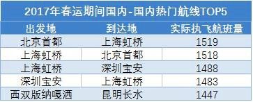 在整個春運期間,出行仍集中在北上深一線城市、昆明和香港地區(qū),其中北京首都往返上海虹橋成為最熱門的境內(nèi)航線,上海浦東飛香港成為最熱門的境外航線。不同于去年同期,今年境內(nèi)熱門航線TOP5中上海虹橋-深圳寶安擠掉了成都雙流-北京首都。