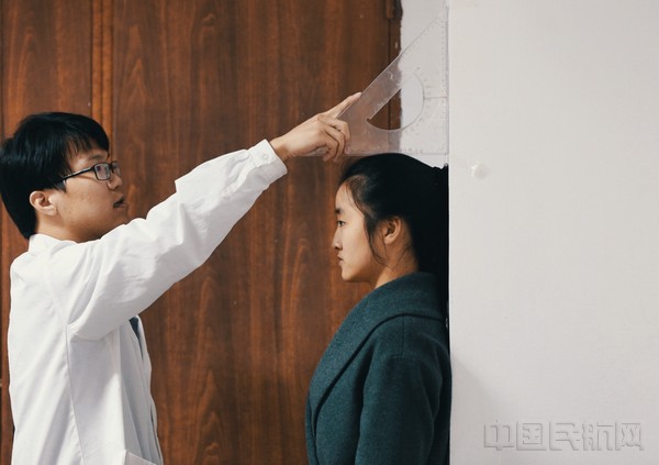 航醫(yī)為報(bào)名女生檢查視力(王龍志/攝)