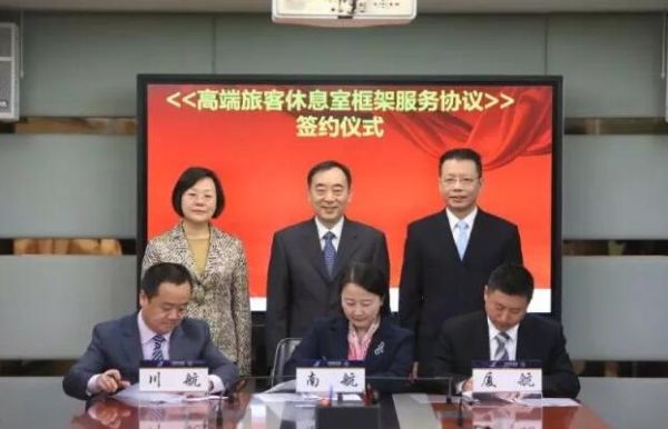 南航地服部、廈航地服部、川航地服部在廣州召開了南航、廈航、川航地服一體化研討會(huì),三方共同簽署了《 高端旅客休息室框架服務(wù)協(xié)議 》。
