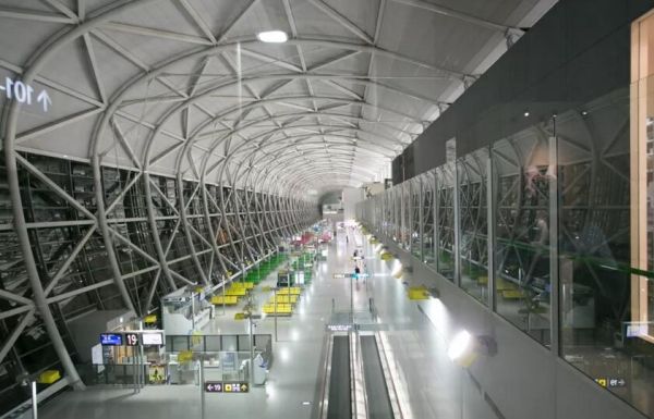 關(guān)西國際機場的超長航站樓在建成時是當(dāng)時全球最長的航站樓,綿延1.7公里,有42個登機口以及一個機翼形狀的大型曲面屋頂。