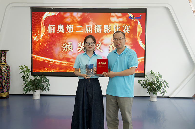 經(jīng)全體佰奧人投票,三位員工的作品脫穎而出,榮獲本屆比賽前三名。頒獎儀式邀請到佰奧集團(tuán)工會主席張主席為選手們頒發(fā)榮譽(yù)證書。